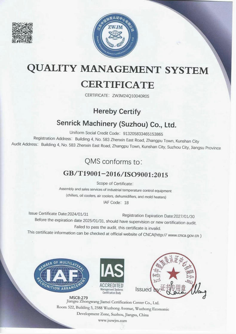 森瑞克機械(蘇州)有限公司(簡稱:SENRICK)是一家中外合作性企業(yè),引進技術,專注于工業(yè)制冷設備,工業(yè)溫控設備,非標制冷設備,集激光,化工,真空設備輔機等集研發(fā)、生產(chǎn)、銷售、服務于一體的的現(xiàn)代化科技企業(yè)。公司擁有完善的制造設備,先進的檢測系統(tǒng),獨立的加工、生產(chǎn)工藝,一支開拓創(chuàng)新專業(yè)有素的技術人才團隊,以及全面的質量控制體系,為產(chǎn)品質量的不斷優(yōu)化提供了強大的保障,以確保滿足不同市場的各種需求。經(jīng)過多年的努力企業(yè)相繼研發(fā)生產(chǎn)出了工業(yè)冷水機,工業(yè)冷風機,工業(yè)冷油機,工業(yè)機,低溫冷水機,低溫冷風機,低溫冷油機,螺桿式冷水機...